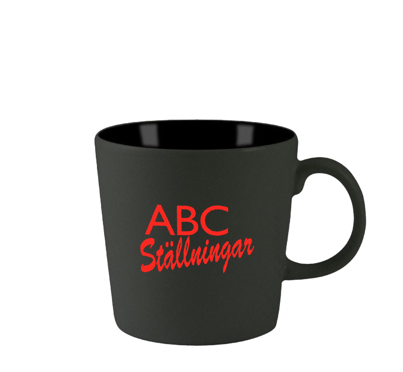 Svart mugg med röd logo. Rejält öra. Perfekt för kaffe eller te.